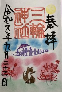 この絵は名古屋・大須にある三輪神社の9月限定御朱印です